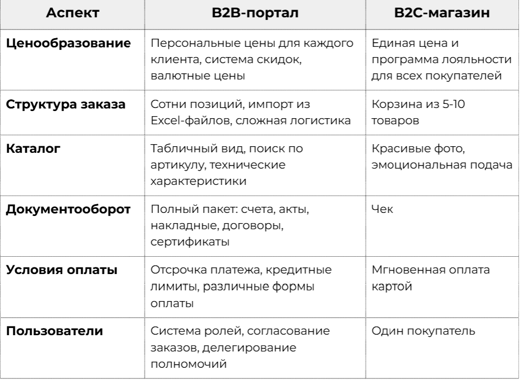 Ключевые отличия B2B-портала от B2C